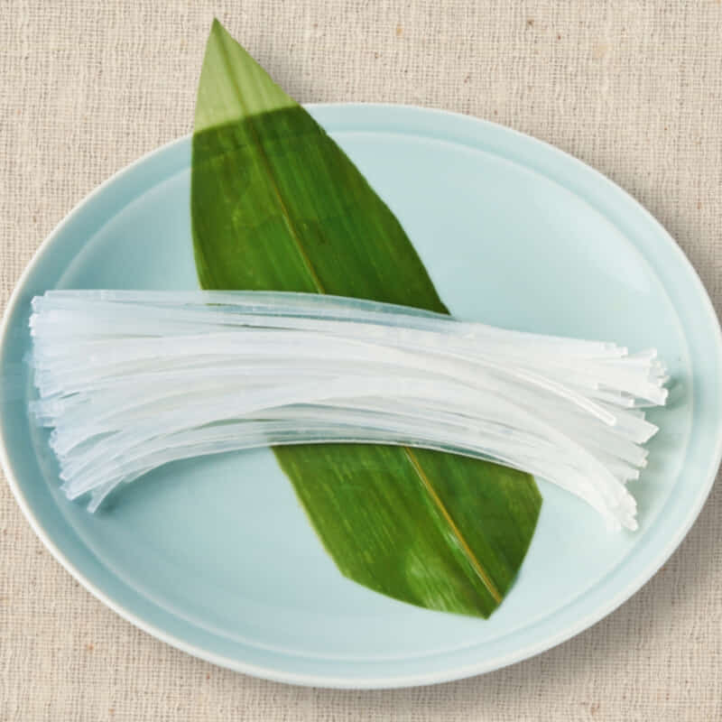 ふぐのお鍋(てっちり)に追加する具材「特製くずきり」150g ふぐの美味しいお出汁を吸い込みやすくするため、真ん中に穴が開いているのが特徴です。