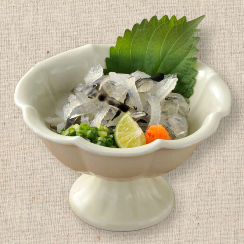 ふぐの表皮をボイルし、氷水で締めて細切りにした商品で、コラーゲンが豊富に含まれております。