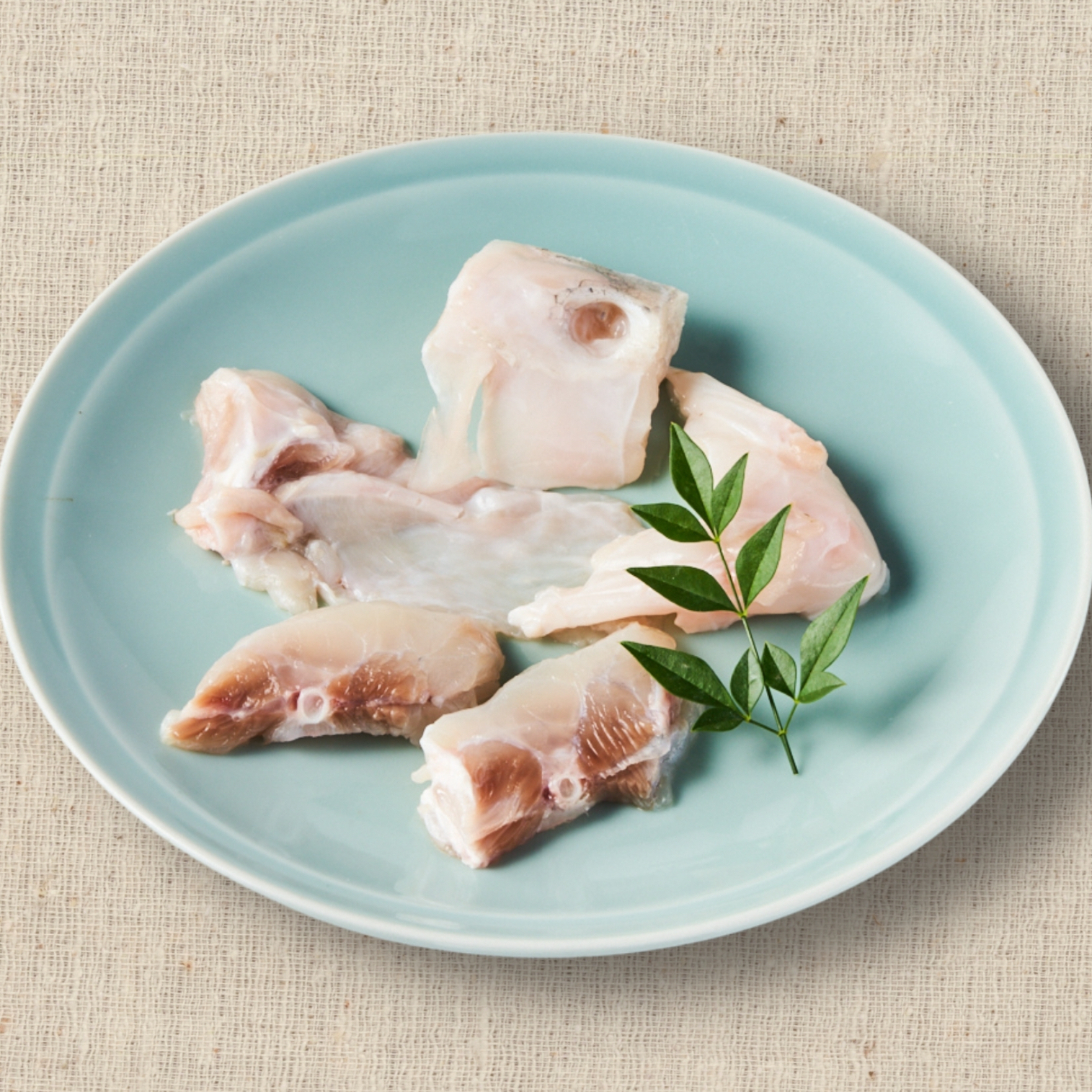 骨から出汁(うまみ成分)がでますので、一番初めに入れてください。骨の周りの身は旨味が強いので、手を使ってしゃぶるように召し上がってください。